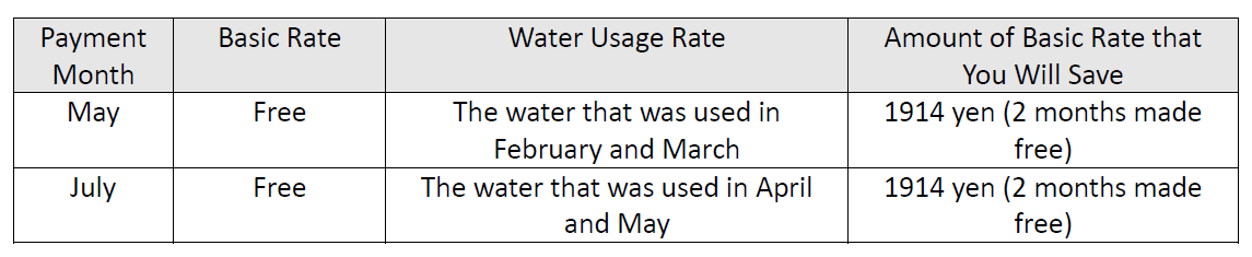 To help reduce the everyday financial burden on the people living in Akashi, the city will be making the “basic rate” (基本料金, kihon ryoukin) for the water utility bill free. This will last for four months. You do not need to apply to get this.