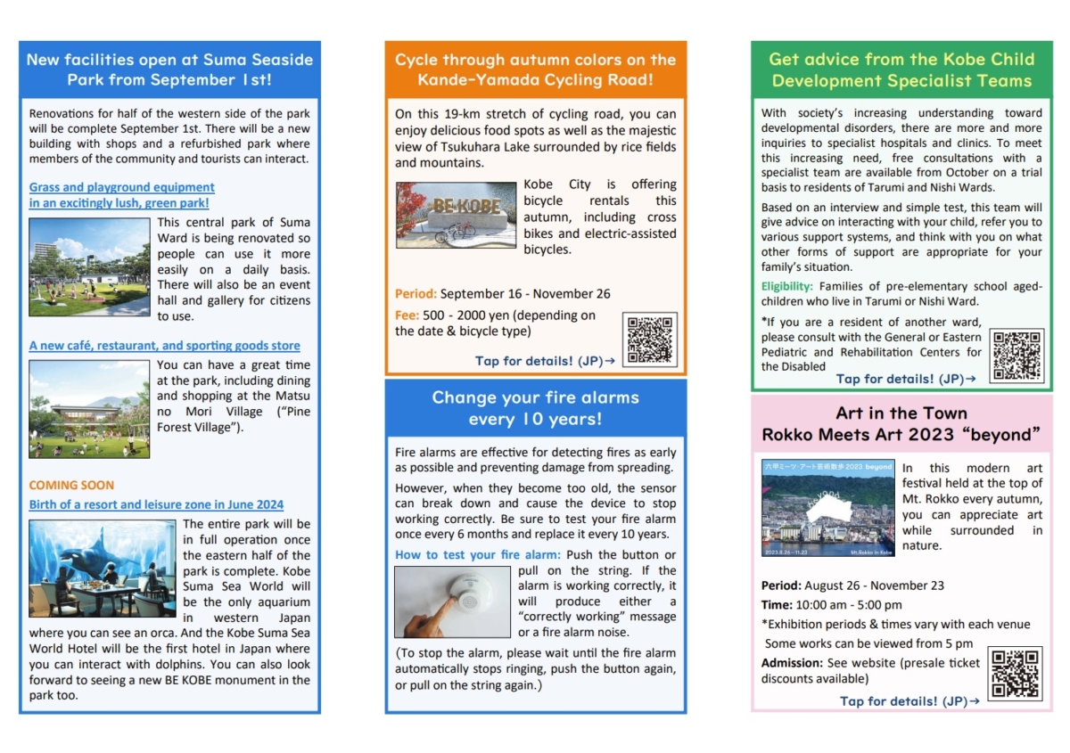 Every month, the English-language KOBE Paper provides a summary about city services, events, and other information for living in Kobe.