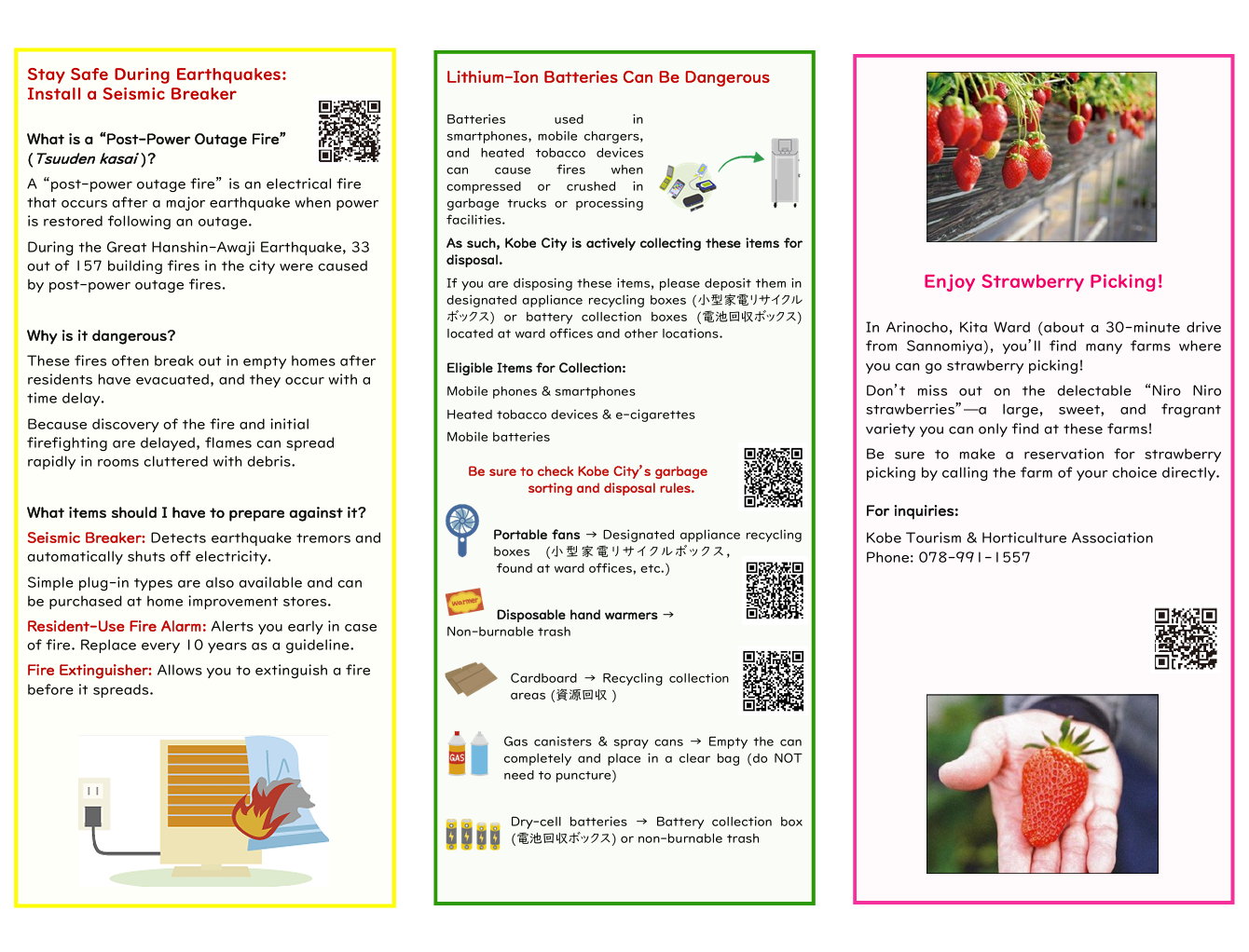 Every month, the English-language KOBE Paper provides a summary about city services, events, and other information for living in Kobe.