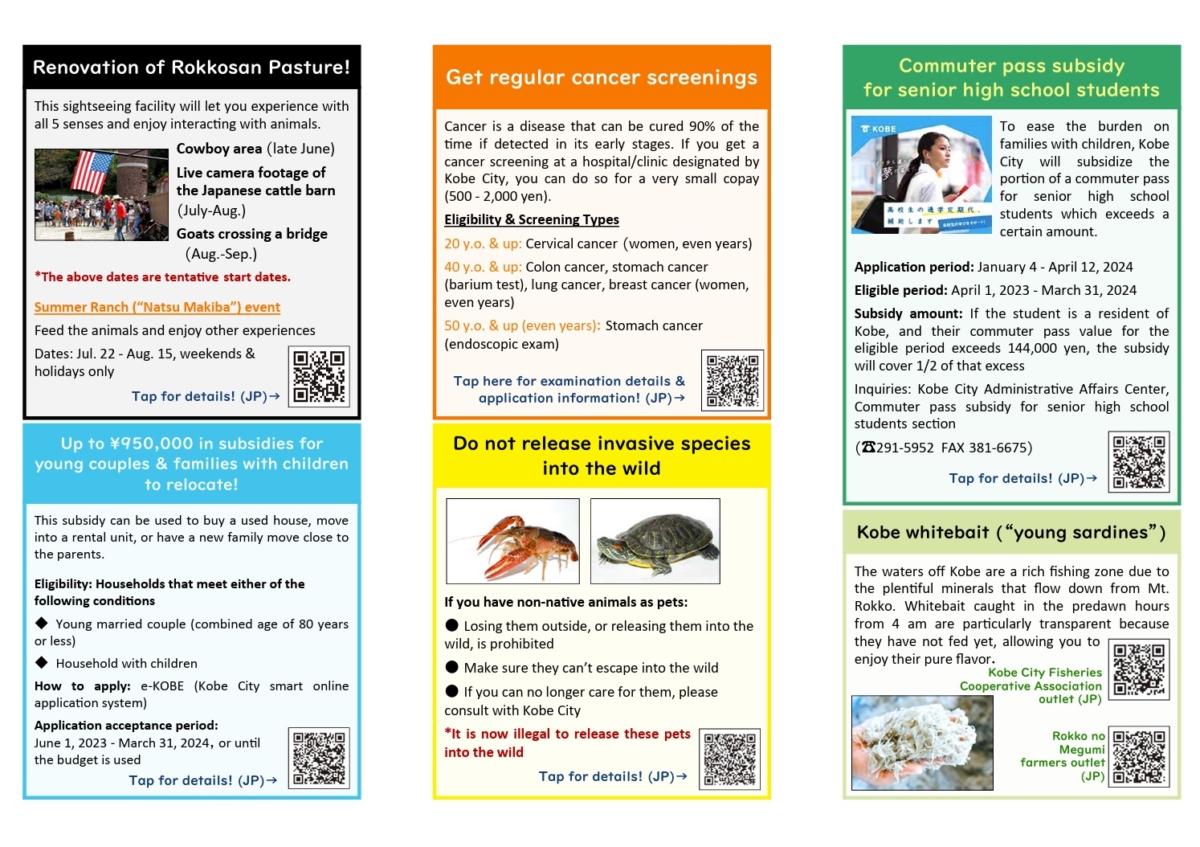 Every month, the English-language KOBE Paper provides a summary about city services, events, and other information for living in Kobe.