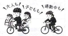 自転車に 乗るときは 大人も 子どもも ヘルメットを かぶって ください