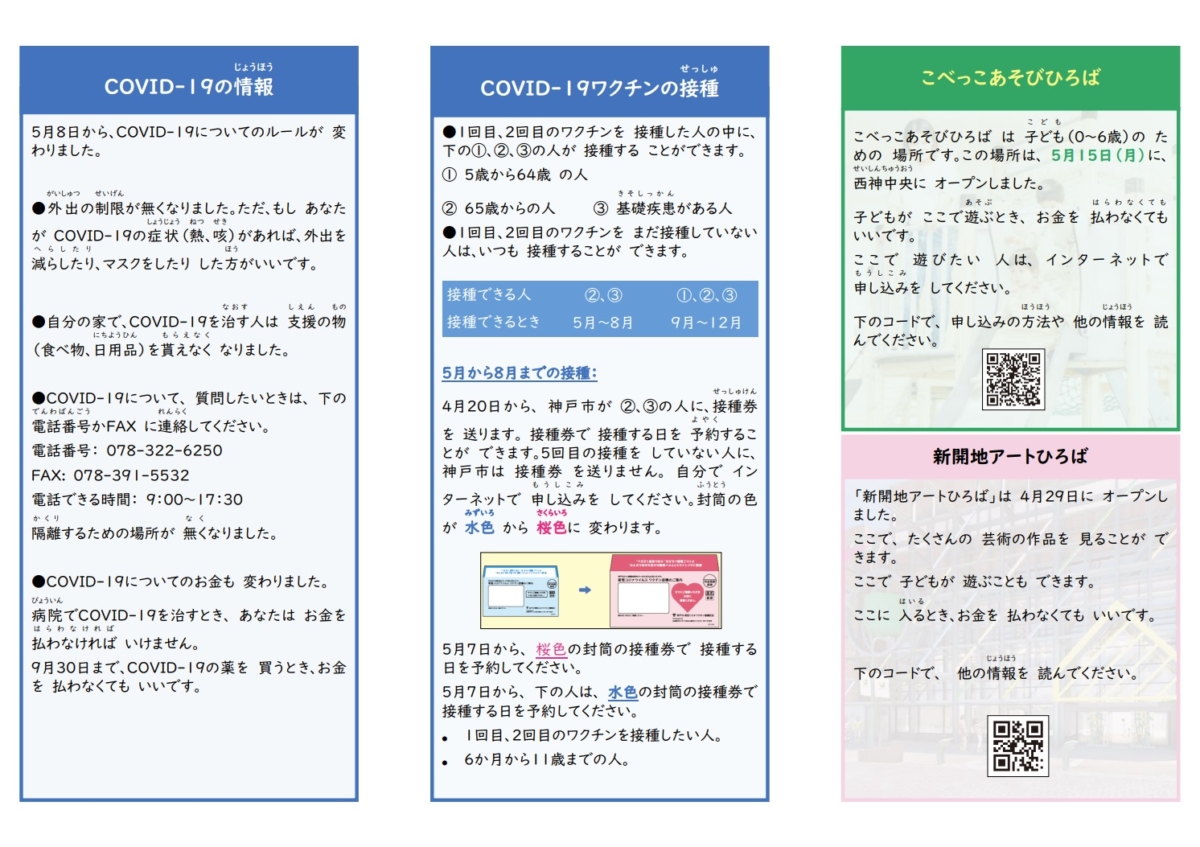 「多言語(たげんご)版(ばん)広報紙(こうほうし)KOBE」は 毎月(まいつき)1回(かい)、神戸市(こうべし)の 情報(じょうほう)を 4言語(げんご)で 紹介(しょうかい)します。