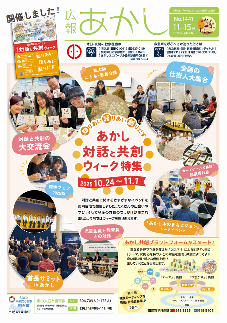 Ang "Koho Akashi" ay isang pahayagan na inilathala ng Akashi City. Lumalabas ito tuwing ika-1 at ika-15 buwan buwan. Nakasulat rito ang iba`t ibang mahahalagang anunsyo, kabilang sa mga ito, ay mga bagay na kapaki-pakinabang na bagay na ...