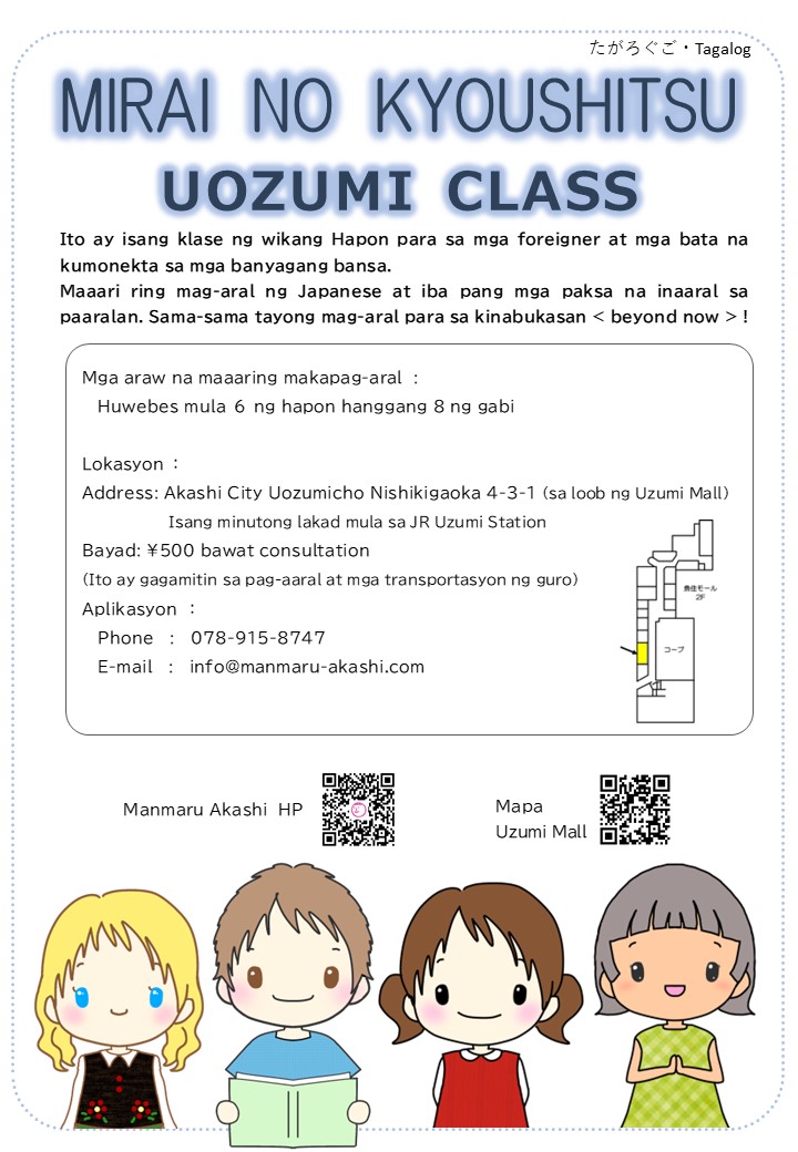 Magtatatag kami ng isang bagong klase ng Hapon para sa mga bata na may mga banyagang ugat sa Uozumi. Inaasahan namin ang iyong paglahok.