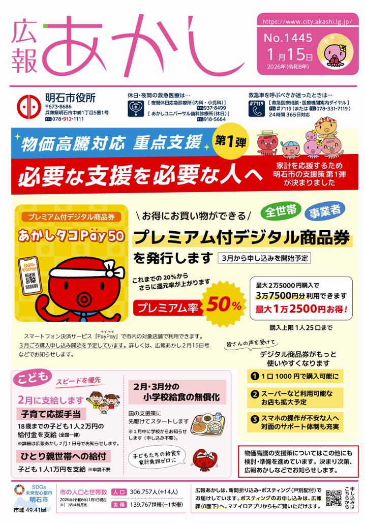 - Mag-register sa “Bosai Net Akashi” para makatanggap ng mga abiso tungkol sa lindol at sakuna.