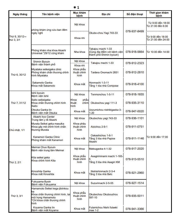 Dịp nghỉ lễ cuối năm (từ 30 tháng 12 đến 3 tháng 1), bệnh viện sẽ đóng cửa nhưng những bệnh viện được viết dưới đây vẫn mở cửa.