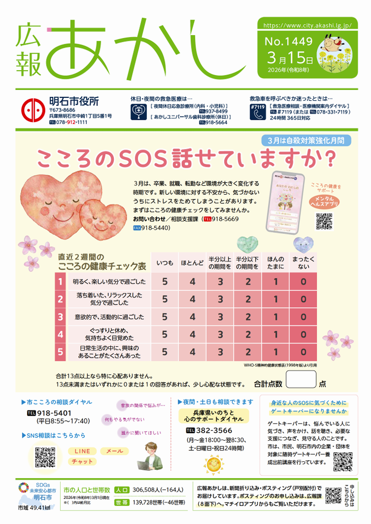 “Truyền thông Akashi” là bài báo do tỉnh Akashi xuất bản. Được đăng vào ngày 1 và 15 hàng tháng. “Truyền thông Akashi” có rất nhiều tin tức. Từ số đó, chúng tôi truyền đạt lại những tin tức hữu ích, quan trọng bằng tiếng Nhật đơn giản.